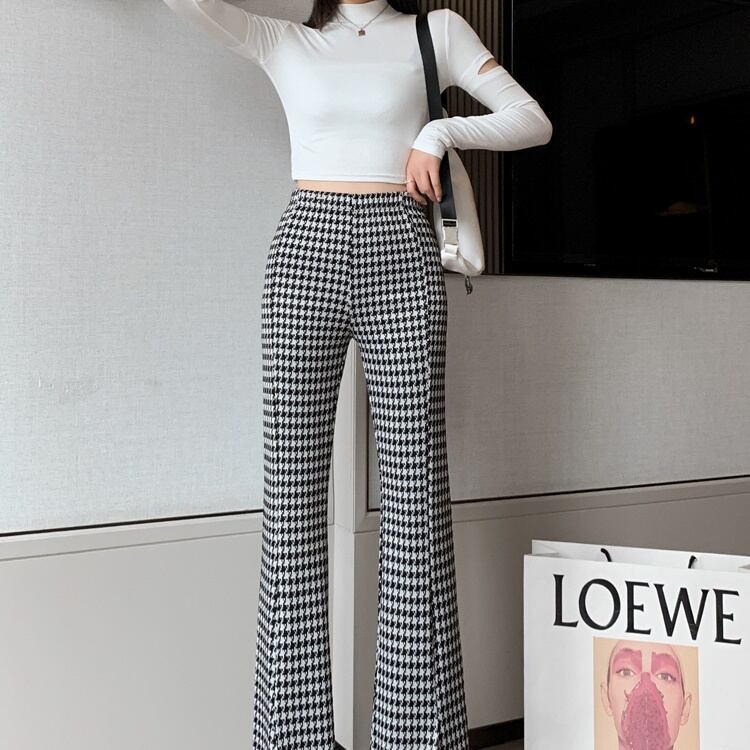 フレアパンツ レディース 春夏 秋冬 春 夏 秋 冬 黒 ボトムス パンツ ベルボトム ハイウエスト ラッパパンツ シンプル 千鳥柄 スリット タイト 美脚 脚長効果 きれいめ 大人 ブラック 千鳥 韓国ファッション 通勤 OL カジュアル オフィスカジュアル ウエストゴム オフィス OL S M L XL 2XL ズボン スーツ C-PSS1035