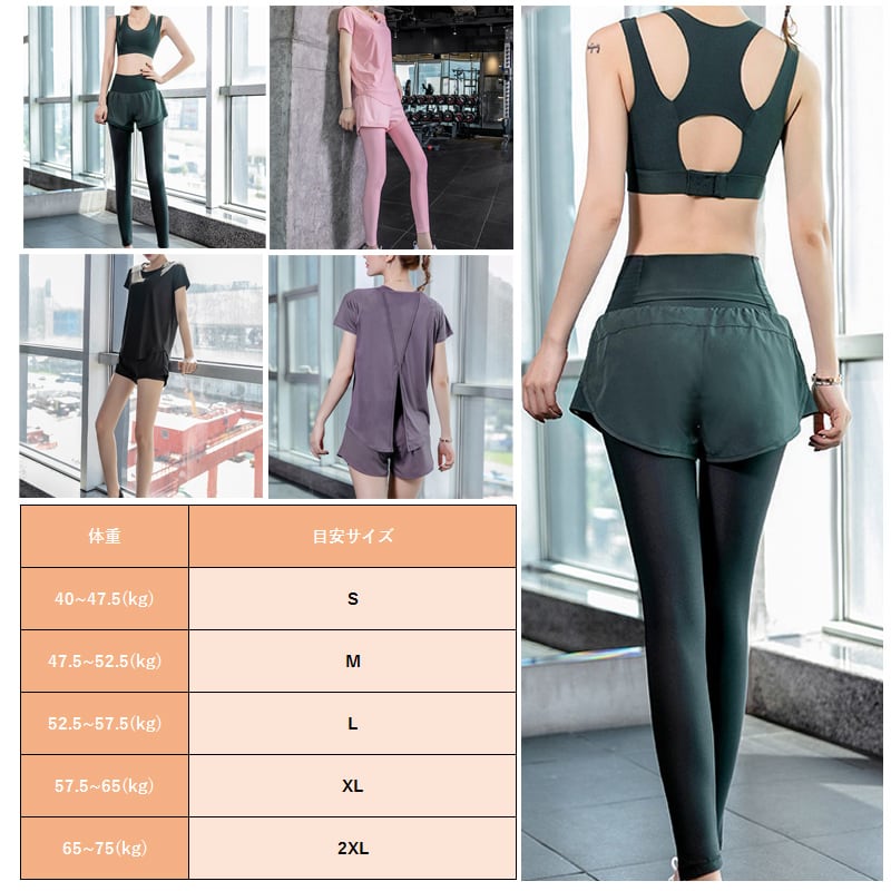 商品名:フィットネスウェア 半袖トップス ショートパンツ レギンス スポーツブラ 4点セット