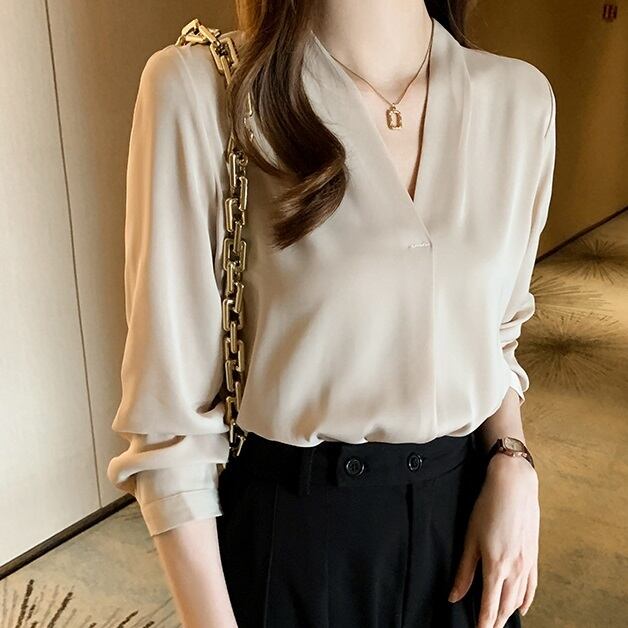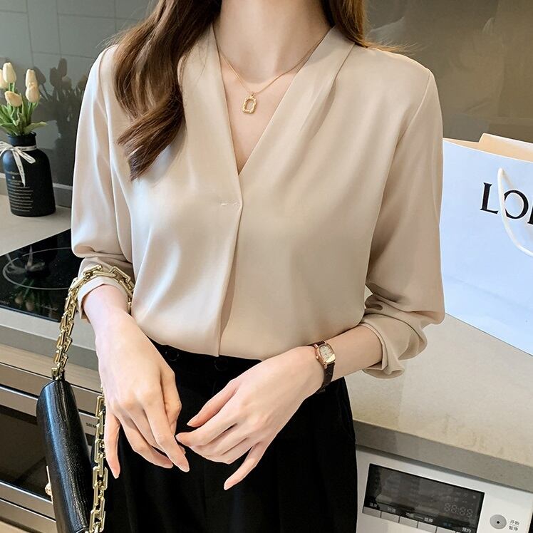 商品名:シンプル 長袖スキッパー ブラウス