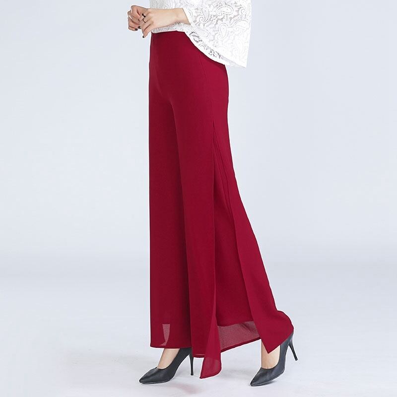 ワイドパンツ レディース 春夏 秋冬 春 夏 秋 冬 黒 ボトムス パンツ スリット ロングパンツ ガウチョパンツ リゾート 海 プール ハイウエスト シフォン シンプル きれいめ 大人 ブラック アイボリー 韓国ファッション OL カジュアル オフィスカジュアル オフィス OL ズボン スーツ C-PSS1027