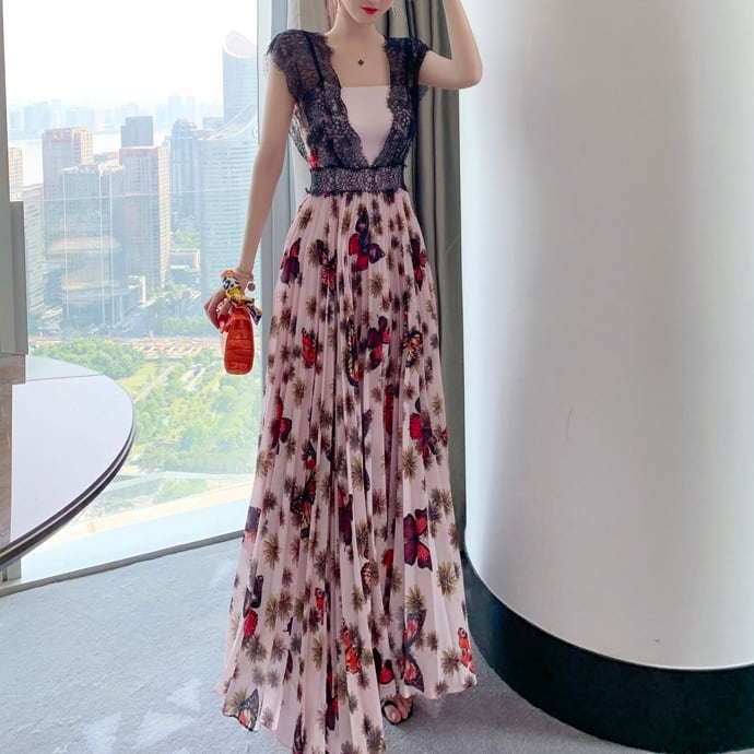 ワンピース レディース 春夏 秋冬 春 夏 秋 冬 花柄 蝶 ノースリーブ レース ドレス 花柄ワンピース マキシワンピース ワンピースドレス フラワー ロング丈ワンピ ドレスワンピース プリーツワンピース ロングワンピース ノースリーブ エレガント ピンク お呼ばれ 結婚式 パーティードレス ノースリーブワンピース 大人 カジュアル 10代 20代 30代 40代 C-OSS0068