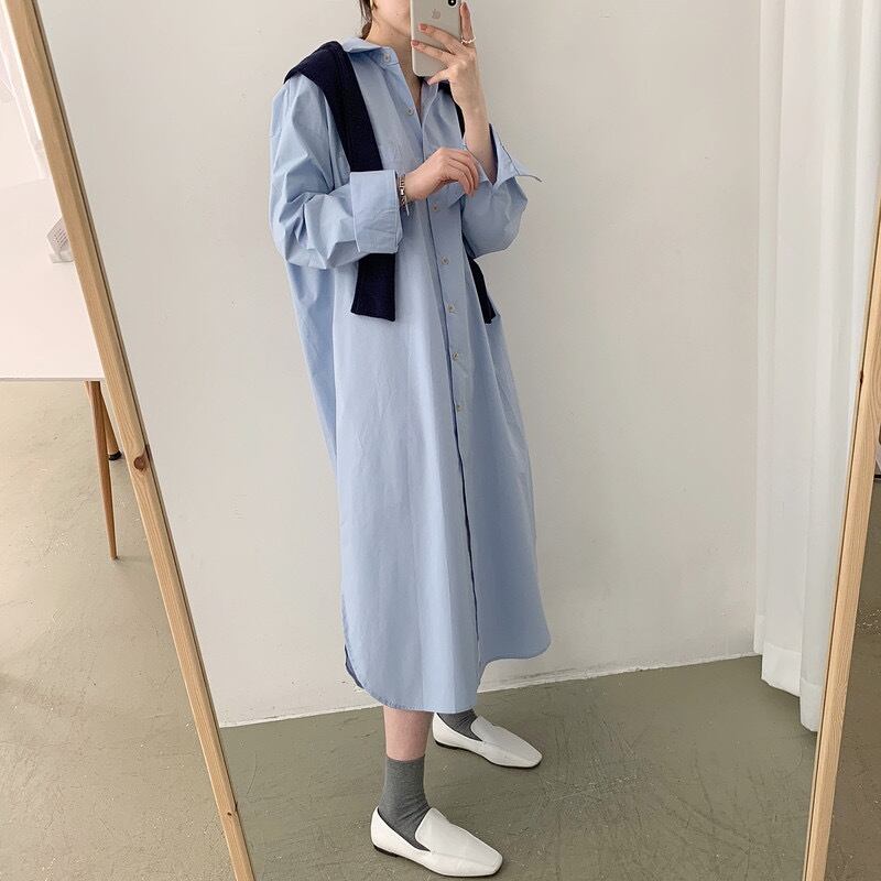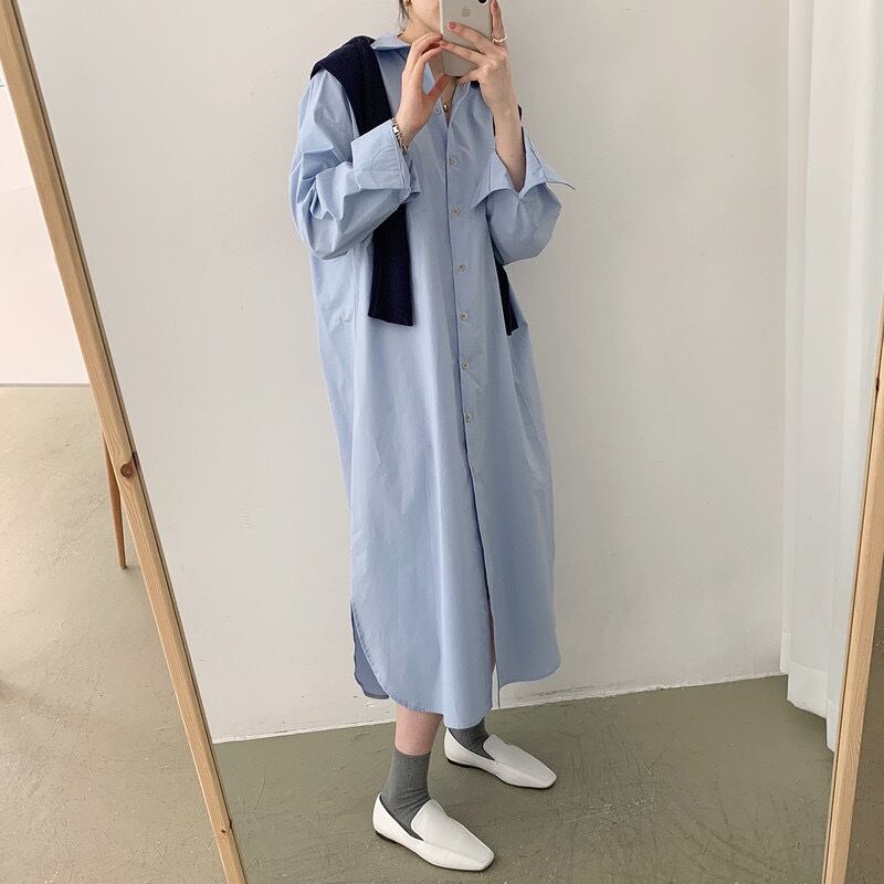 ロングワンピース レディース 春夏 秋冬 春 夏 秋 冬 白 黒 シャツワンピース ゆったり ロングシャツ ライトアウター ロング マキシワンピース 無地 楽チン ホワイト ライトブルー オフィスカジュアル きれいめ OL 10代 20代 30代 C-OSS0027