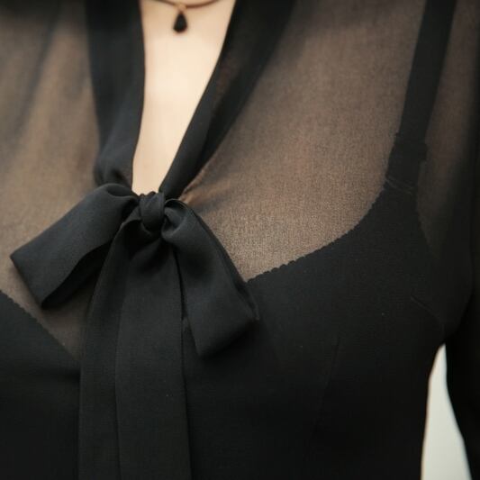シースルー ボウタイ ブラウス。