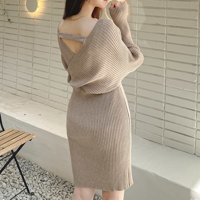 ワンピース レディース 春夏 秋冬 春 夏 秋 冬 黒 タイトワンピース ニットワンピース 長袖 カシュクール リブ ニットワンピ リブニット 長袖ワンピース ミディアムワンピース きれいめ 韓国 タイトニットワンピース ミモレ ひざ丈ワンピース ンプル 韓国ファッション OL カジュアル Vネック 深Vネック ベージュ シンプル 10代 20代 30代 40代 C-OSS0078