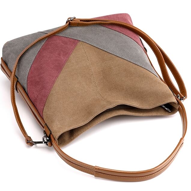 キャンバス地のハンドバッグ。