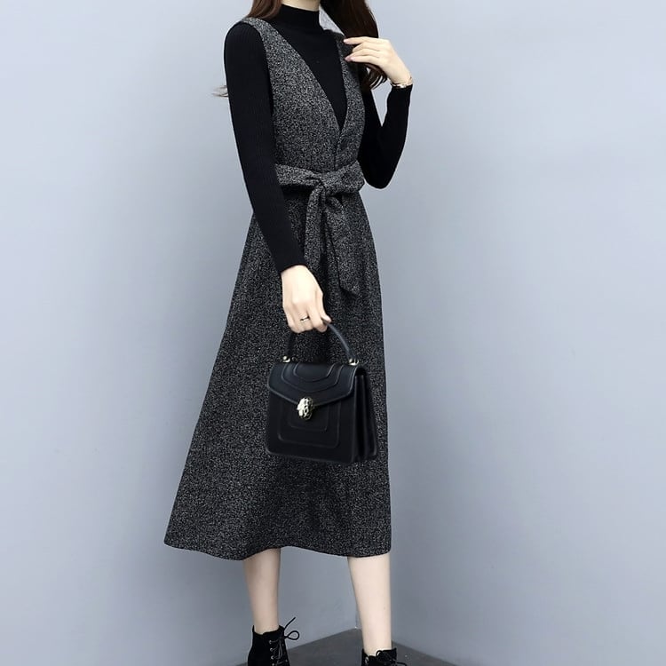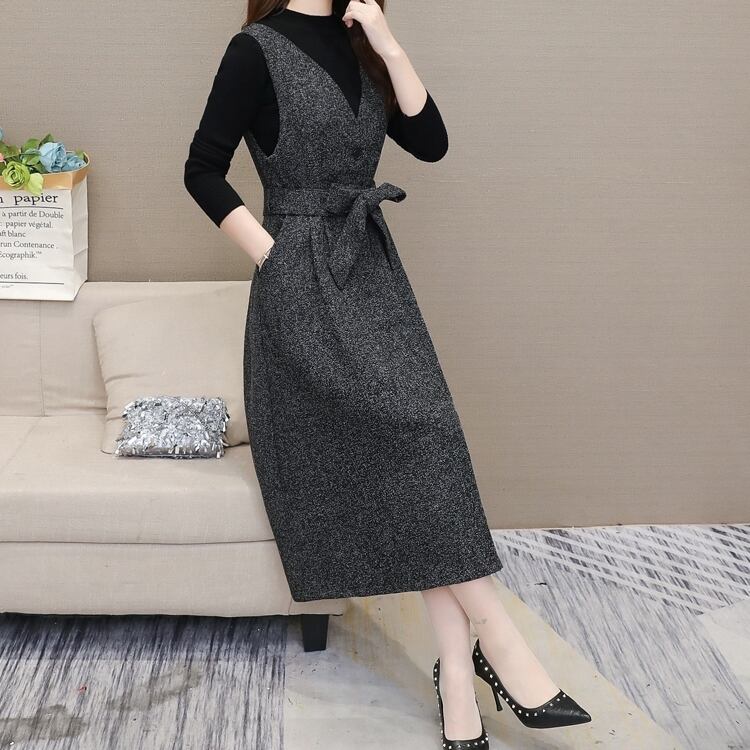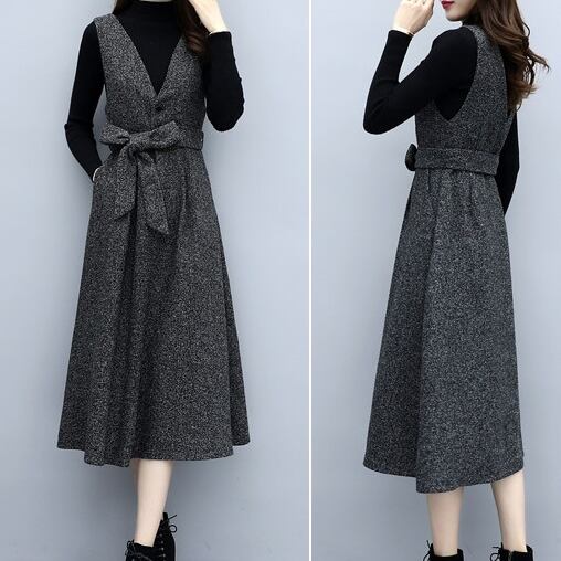 セットアップ レディース 春夏 秋冬 春 夏 秋 冬 ワンピース ジャンパースカート ニットトップス 長袖 黒 トップス ノースリーブワンピース ひざ丈 ミディアムワンピース ロング ミモレ丈 ワンピース シンプル ひざ丈ワンピ 2ピース セット カジュアルワンピ グレー ブラック 体型カバー 大人 カジュアル 10代 20代 30代 40代 C-WAW1042