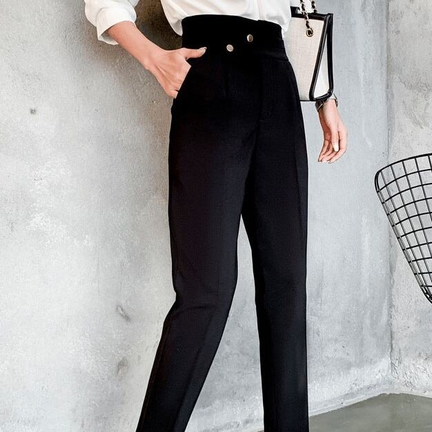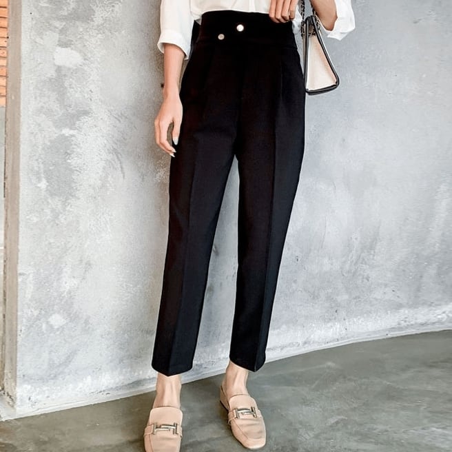 テーパードパンツ レディース 春夏 秋冬 春 夏 秋 冬 黒 ボトムス パンツ クロップドパンツ ハイウエスト シンプル クロップド丈 きれいめ 大人 ブラック アイボリー 韓国ファッション OL カジュアル オフィスカジュアル オフィス OL ズボン スーツ C-PSS1019