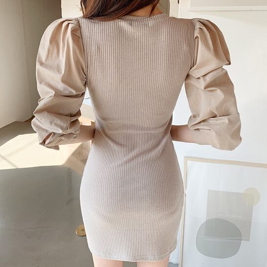 商品名:バブルスリーブ&タイトニット ドッキング ワンピース