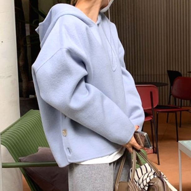 ゆったりサイズ サイドボタン パーカー C-TAW1041