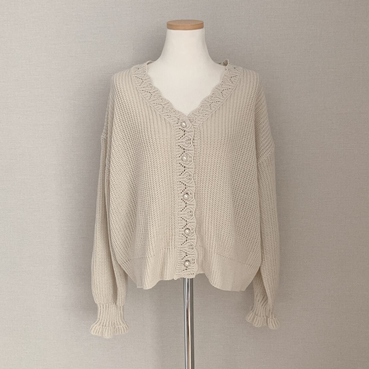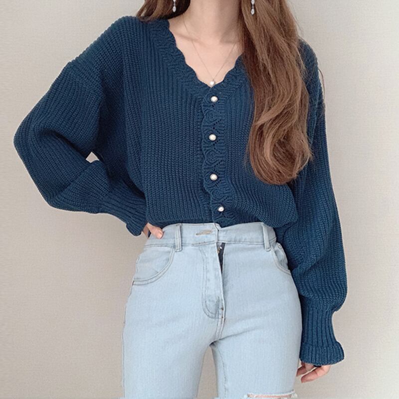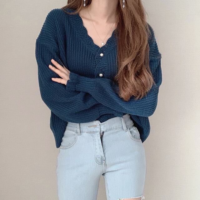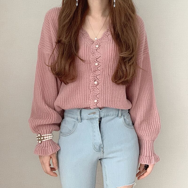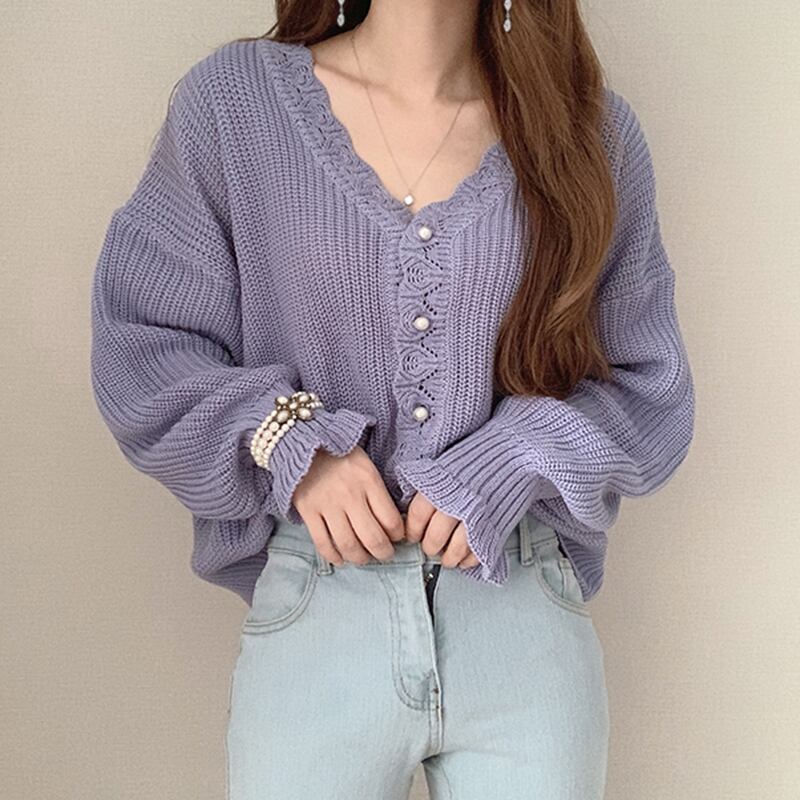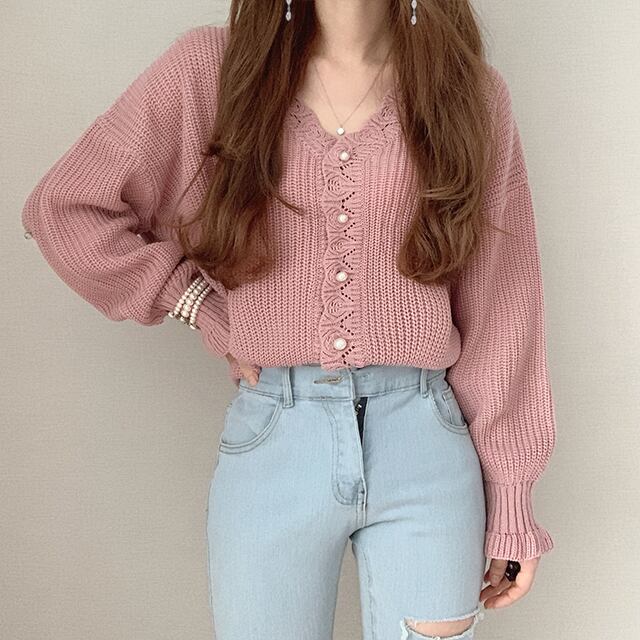 Vネック パフ袖 ニットカーディガン C-TAW1043