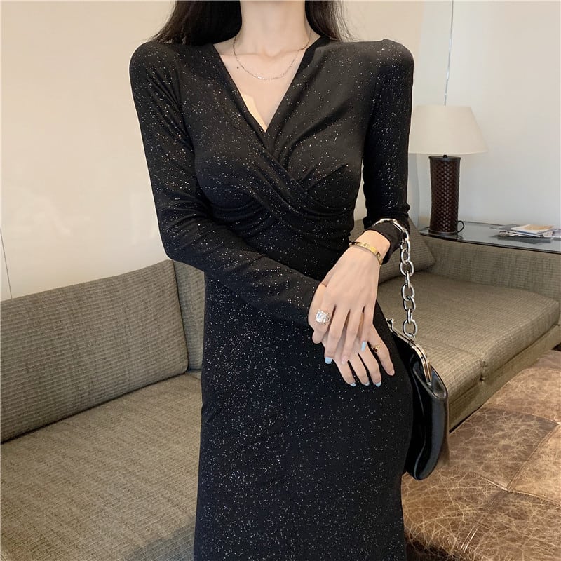 ロング丈のスカートとラメでパーティーシーンにピッタリ。