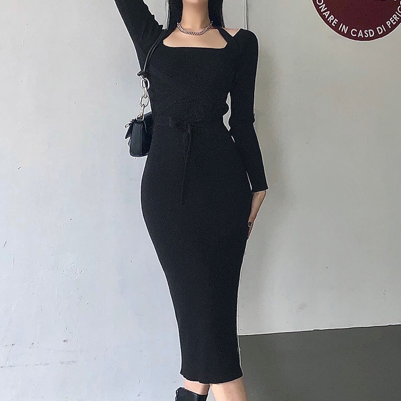 商品名:ホルダーネック タイト リブニットワンピース