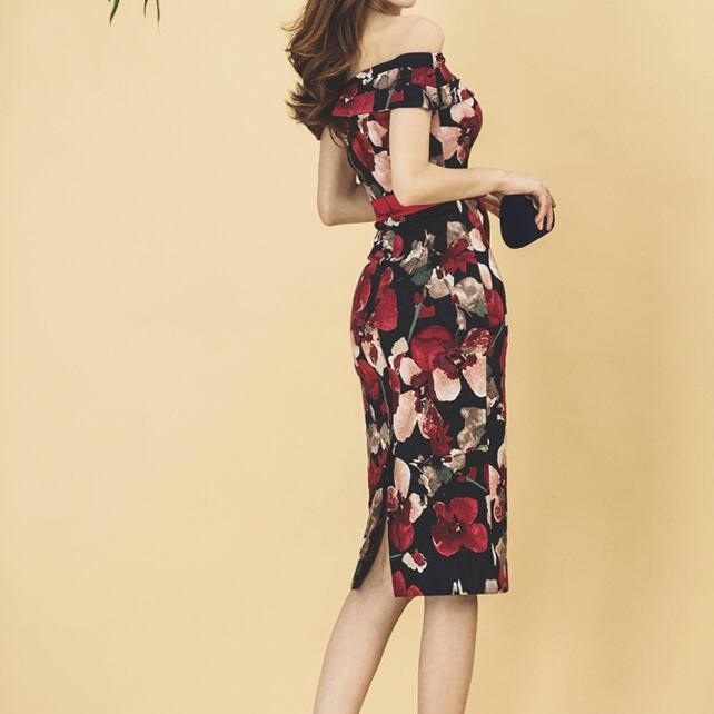 ワンピース レディース ドレス 花柄ワンピース フラワー柄ワンピース 花柄ドレス オフショルダー 花柄 パーティー 春 夏 春夏 ワンピースドレス パーティードレス キャバドレス タイトドレス タイトワンピース ブラック 黒 ナイトドレス ドレスワンピース C-OSS0016