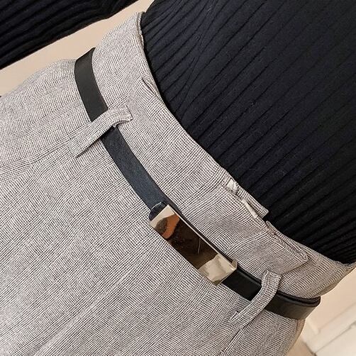 ウエスト部分のタックとセンタープレスで、