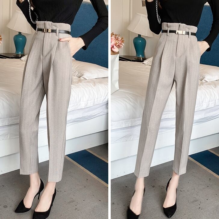 商品名:ハイウエスト クロップド丈 テーパードパンツ