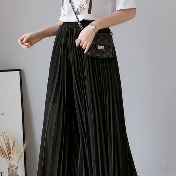 ワイドパンツ スカーチョ レディース 春夏 秋冬 春 夏 秋 冬 黒 プリーツパンツ ガウチョ パンツ プリーツ ロング シフォン ハイウエスト ウエストゴム ゆったり 楽チン ネイビー ブラック ピンク ベージュ 10代 20代 30代 C-PSS1006