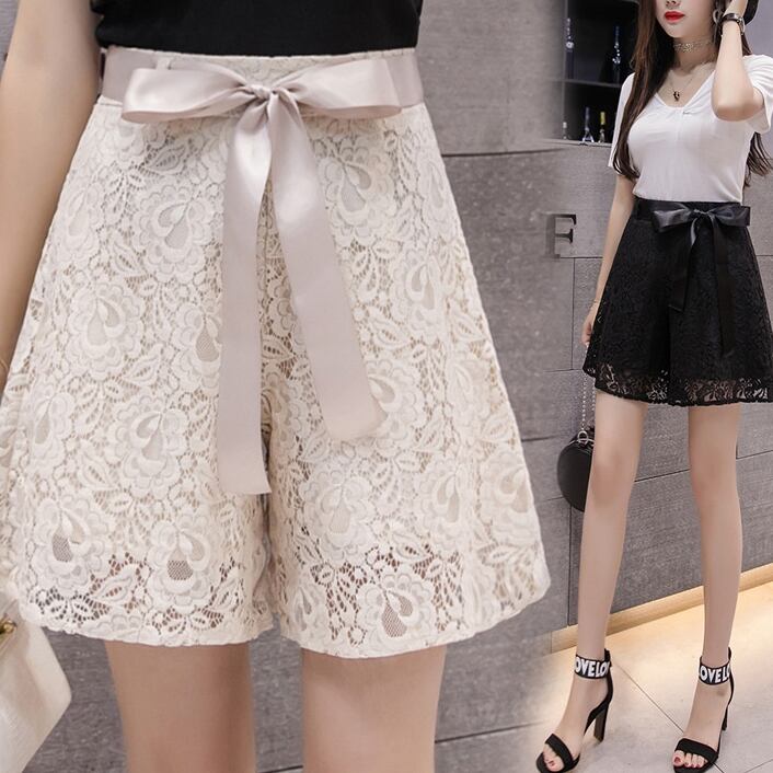 商品名:総レース ショート丈 ハイウエスト リボン キュロットパンツ