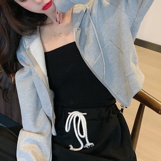 シンプル無地 ショート丈パーカー C-TAW1056