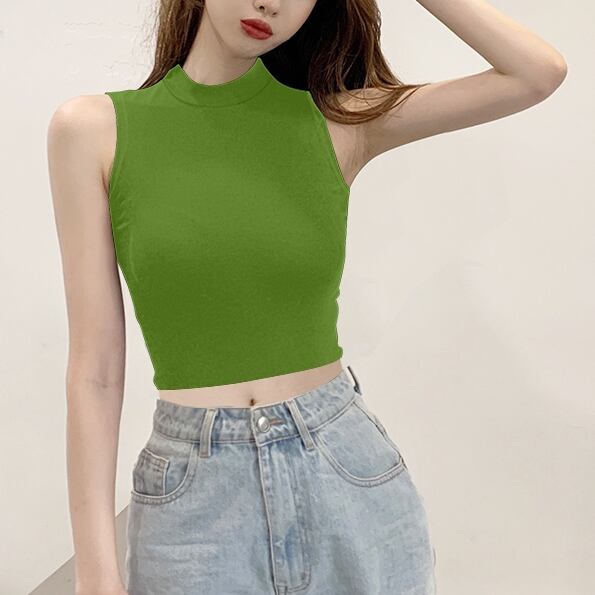 商品名:ショート丈 ハイネック ノースリーブ トップス
