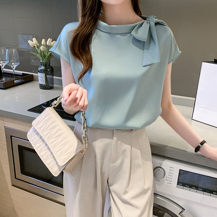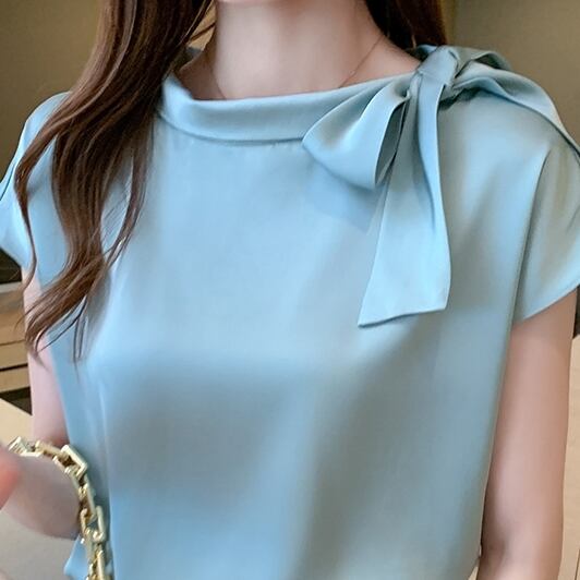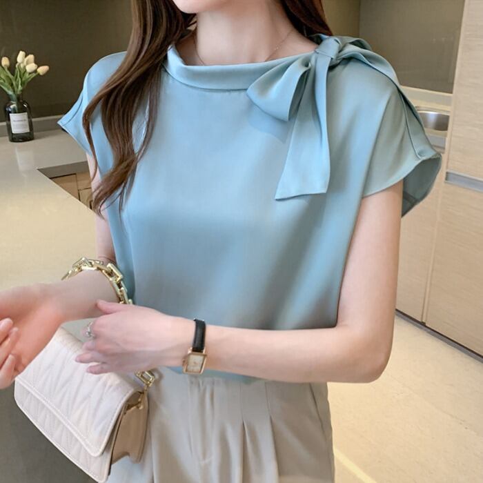 ブラウス レディース 春夏 秋冬 春 夏 秋 冬 チュニック 半袖 ブラウスシャツ リボン シャツ 半袖チュニック フレンチスリーブ ボウタイブラウス トップス シャツ リボンネック 半袖シャツ 韓国 ファッション オフィスカジュアル 韓国風 上品 ライトグリーン 体型カバー 大人 カジュアル 10代 20代 30代 40代 C-TSS0030