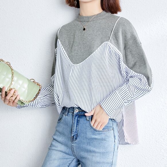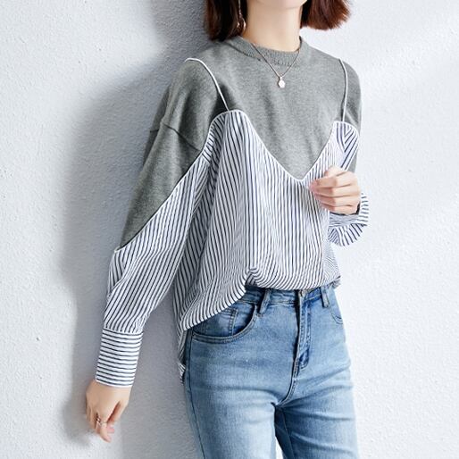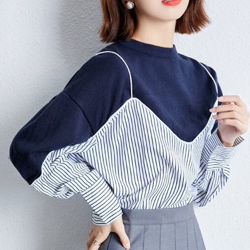 トップス レディース 春夏 秋冬 春 夏 秋 冬 ブラウス シャツ 長袖 ドルマン レイヤード 長袖トップス チュニック ストライプ キャミソール カットソー ストライプシャツ ネイビー グレー 韓国 ゆったり 長袖トップス オフィス カジュアル OL 上品 大人 10代 20代 30代 40代 C-TSS0047
