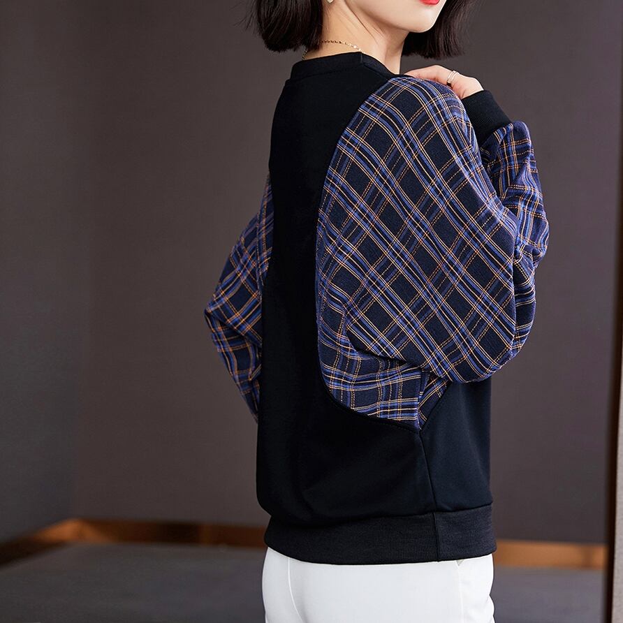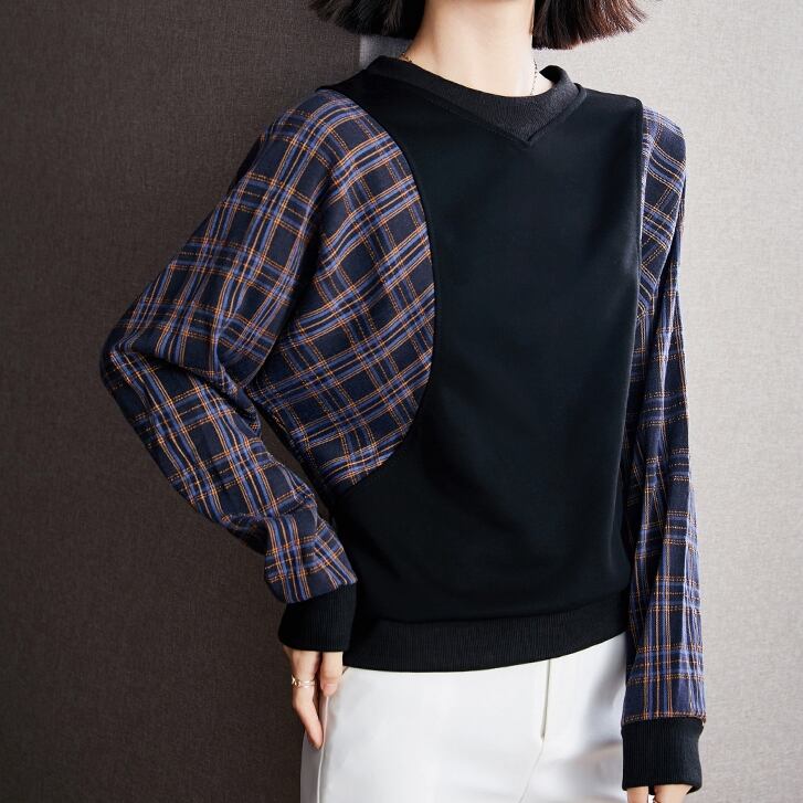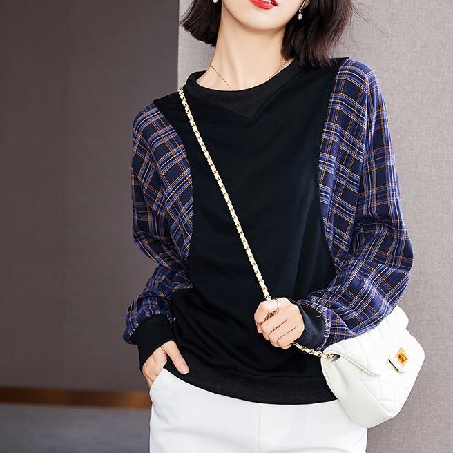 トップス レディース 春夏 秋冬 春 夏 秋 冬 黒 カットソー チェック柄 ドルマン シャツ 長袖 レイヤード 長袖トップス チュニック チェック柄 カットソー チェック柄カットソー ブラック 韓国 ゆったり 長袖トップス オフィス カジュアル OL 上品 大人 10代 20代 30代 40代 C-TSS0049