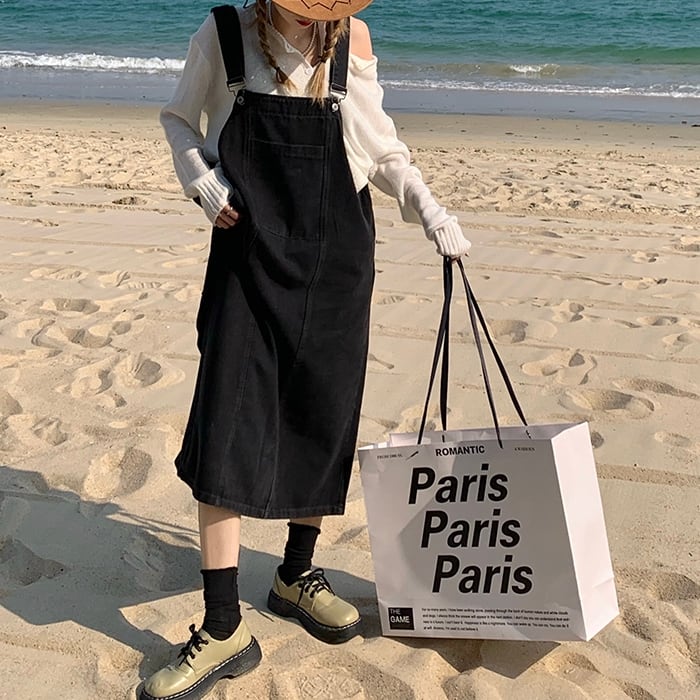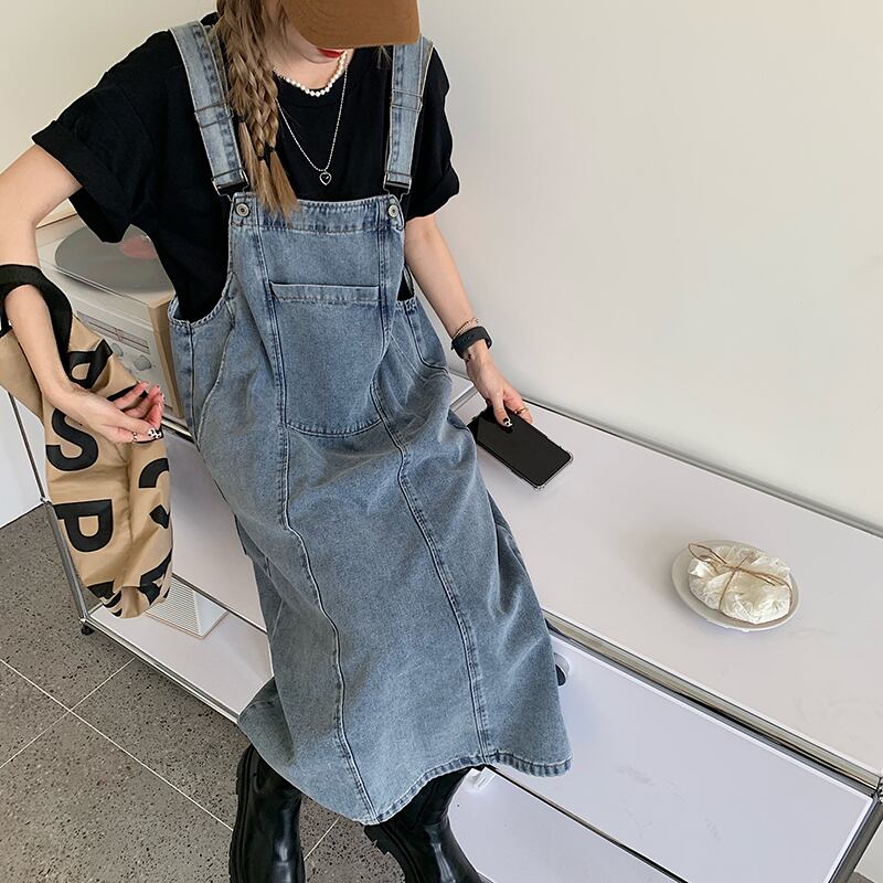 ジャンパースカート レディース 春夏 秋冬 春 夏 秋 冬 黒 デニム スカート ジャンスカ オーバーオール サロペット ひざ丈 OL きれいめ スリット デニムジャンパースカートワンピース オールインワン ミモレ丈 ロング ロンパース 韓国 ファッション 韓国風 上品 ブラック ライトブルー 大人 カジュアル 10代 20代 30代 40代 K-O0011