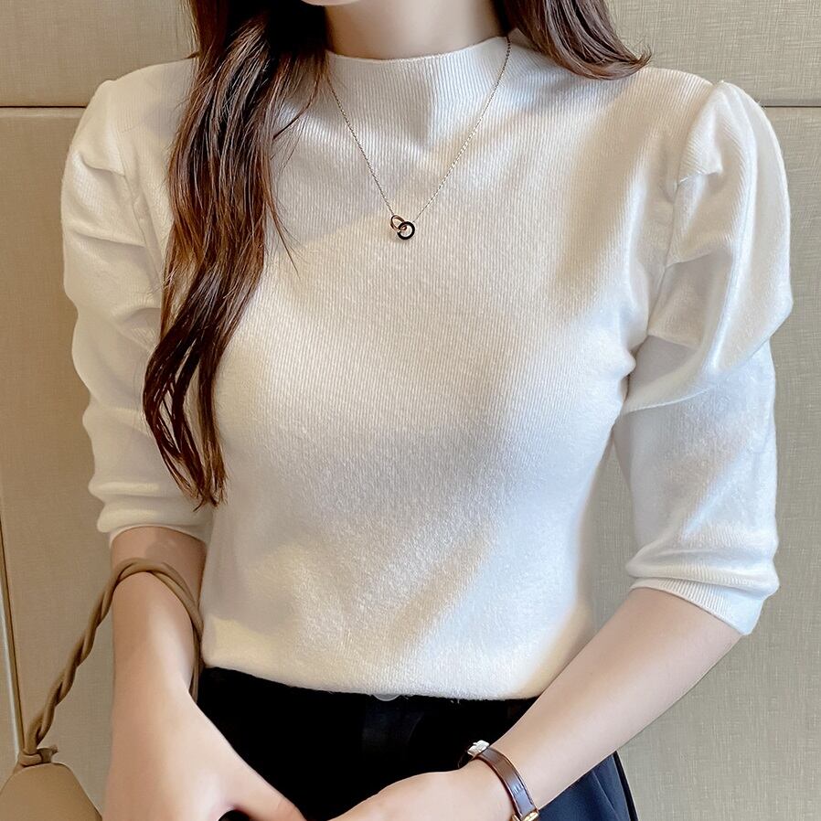 トップス レディース ニット 春夏 秋冬 春 夏 秋 冬 白 黒 ニット トップス 無地ニット 五分袖 半袖トップス パフスリーブ チュニック 無地 ファッション ニットトップス きれいめ シンプルシャツ ホワイト ピンク ライトパープル ベージュ オレンジ ブルー ブラック オフィスカジュアル 韓国 フェミニン シンプル オフィス カジュアル OL 上品 大人 40代 50代 C-TSS0062