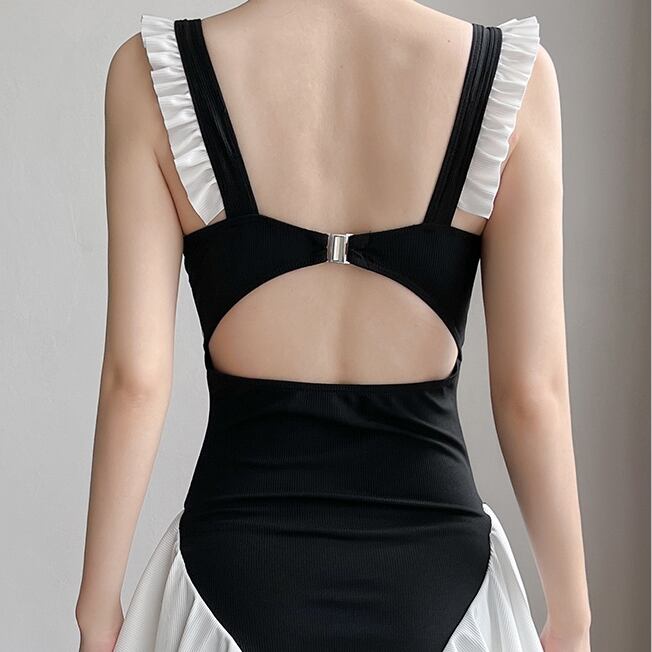 肩や裾のフリルがレトロでガーリーなワンピース水着。