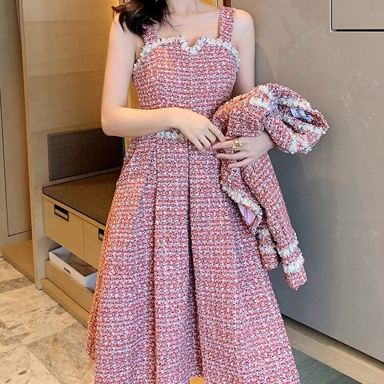 ジャケットとワンピースのセットアップ。