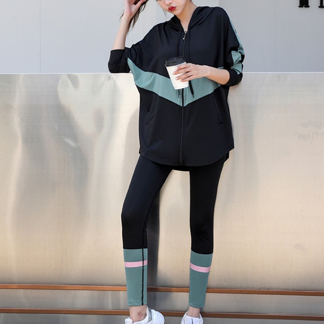 商品名:フィットネスウェア スポーツウェア パーカー レギンス 2点セット