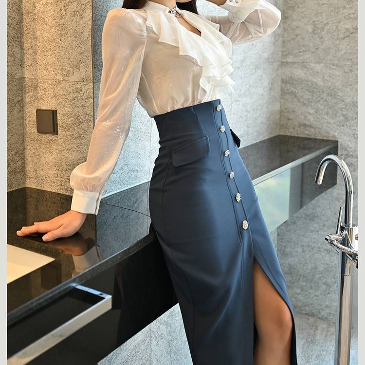 商品名:シースルーブラウス & スリット入り タイトスカート セットアップ