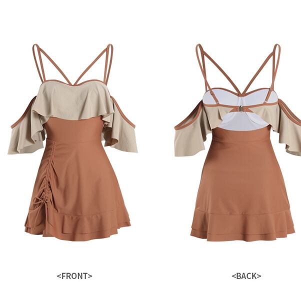 商品名: レディース オープンショルダー フリル ワンピース 水着