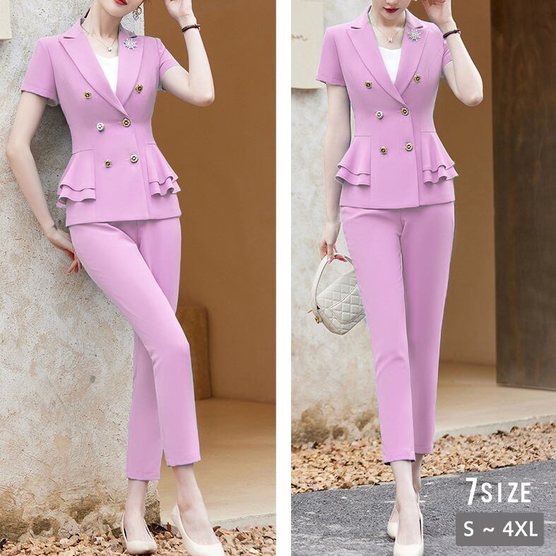 商品名:サイドフリル半袖ジャケット&パンツ パンツスーツ セットアップ